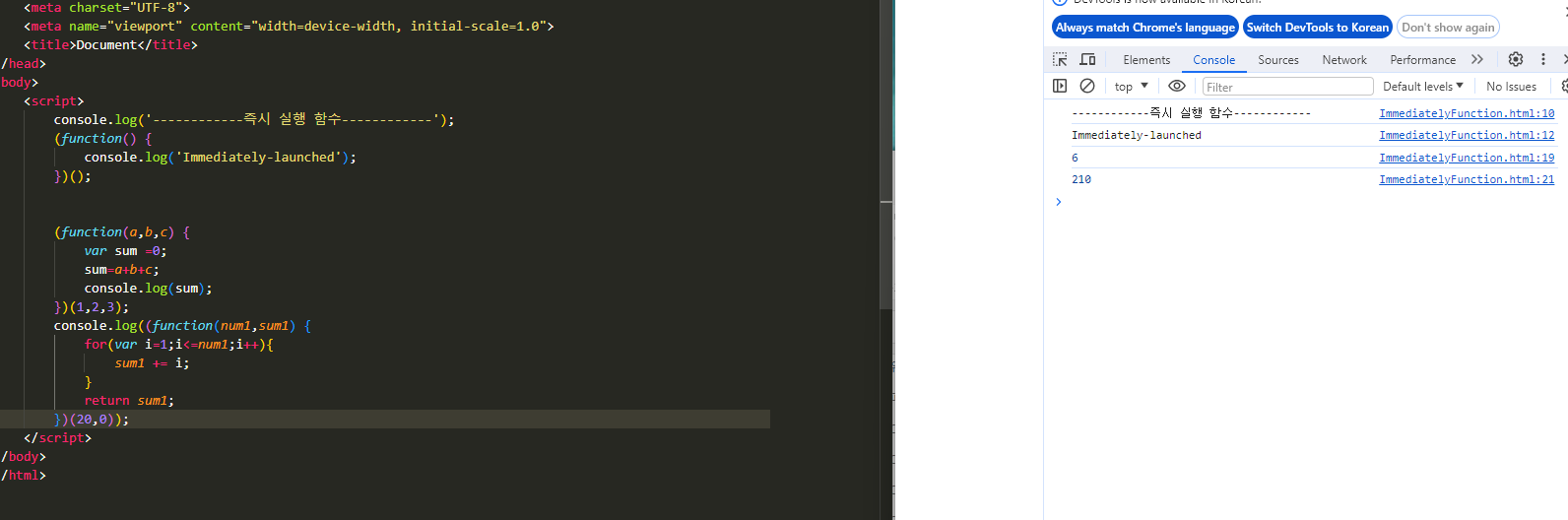 -- 함수 생성과 동시에 실행하여 return을 받아오거나 실행되는 방식
